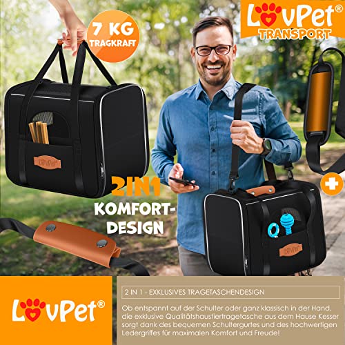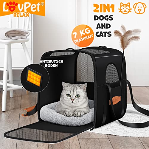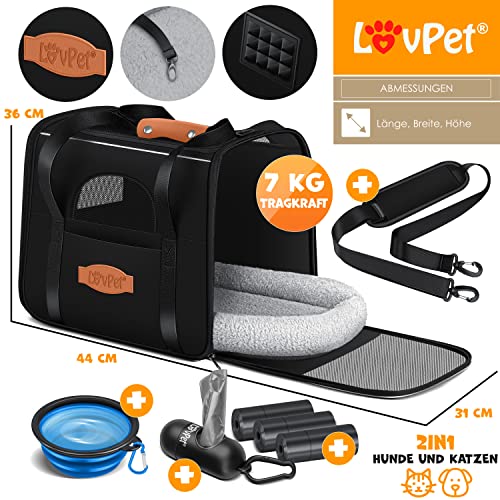 LOVPET® Hondenbox, hondentas, transportbox, 2-in-1 honden- en kattentas, hondentransportbox incl. huisdierkussen + 3x zakwielen + kom 44 x 31 x 36 x m transporttas voor huisdieren, huisdiertransportbox, zwart