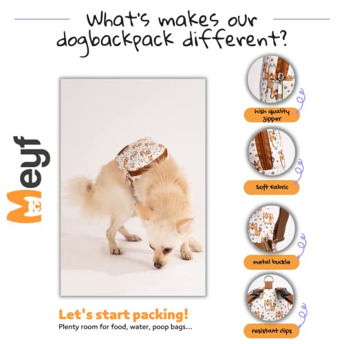 Als je je hond uitlaat, is het soms handig om van alles en nog wat mee te nemen. De hondenrugzak van het merk MEYF is ideaal voor deze situatie, zodat uw hond zijn spullen mee kan nemen. U kunt de hondenrugzak vullen met hondensnacks, hondenpoepzakjes of met een waterfles. Natuurlijk kun je de tas ook vullen met wat lekkers voor jezelf! Deze mooie en praktische tas is gemaakt van 100% polyester en is verkrijgbaar in verschillende prints en kleuren en mag in geen enkele garderobe van uw trouwe viervoeter ontbreken. De rugzak is waterdicht, lichtgewicht en in lengte verstelbaar, waardoor deze rugzak bruikbaar en gebruiksvriendelijk is voor elke hond. De tas heeft een zachte binnenvoering die de rug van de hond beschermt. Aan de achterkant van de rugzak zit een ring om leuke hondenaccessoires aan te hangen, zoals een hondenbel. Wij zijn er zeker van dat degenen die het gebruiken tevreden zullen zijn. Borstomvang Small:32-45cm Medium:45-65cm Large:65-90cm Maat: Lengte:18cm Breedte:16cm Hoogte:3cm 10% van de totale productie van het merk Meyf gaat naar asieldieren.