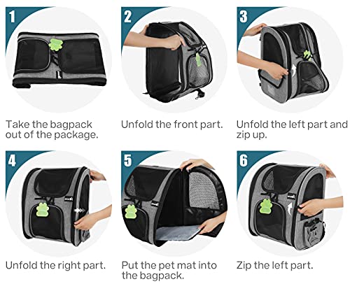 pecute Kattendrager hondenrugzak, draagbare ademende rugzak met opening aan de voorkant, mesh vensterzakken, luchtige ruimte geweldig voor het dragen van puppyhonden, katten tot 8 kg (M, grijs)