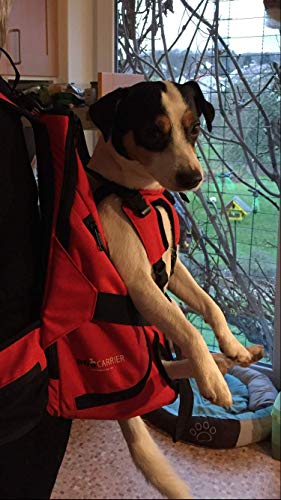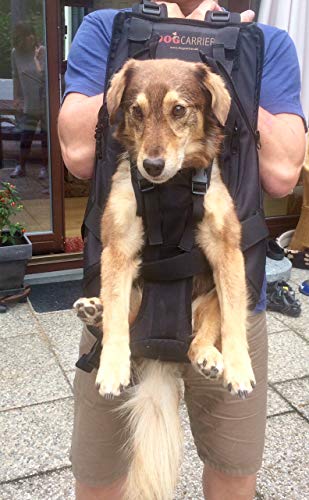 De gepatenteerde hondenrugzak van ca. 3-6 kg gewicht. Gelieve na de bestelling aan te geven of je de rugzak in rood of zwart wenst. De rugzak kan op de borst of op de rug worden gedragen. Hij is kwalitatief hoogwaardig en stabiel. MAATTABEL van onze hondendrager of hondenrugzak Dog Carrier: Met de keuze uit nieuwe VIER verschillende variaties MINI (ruglengte wordt gemeten van staartaanzet tot nekaanzet) tot 35 cm en 3-6 kg) SMALL (ruglengte tot 42cm en 5-10kg), BIG (ruglengte tot 53 cm en van 7-16kgXXL (ruglengte tot ca. 70 cm en van 15-30 kg) kun je honden van verschillende rassen met een minimumgewicht van 3 kg tot ca. 30 kg gewicht dragen. De hondenrugzak nog de volgende opbergvakken: zijvak links met ritssluiting, met 2 binnentijdschriften, bijv. 1 x voor drinkfles (afhankelijk van de grootte van de rugzak verandert progressief het zakvolume) en 1 x voor kleine goederen zijvak rechts met ritssluiting, met 5 binnenmagazijnen (1 x met ritssluiting) en een sleutelhouder (karabijnhaakjes) Beer ckriem links (Vanaf BIG-variant: tas met ritssluiting geschikt voor iPhone en nog wat ruimte daartoe heupriem rechts (vanaf BIG Varian): tas met ritssluiting geschikt voor kleine artikelen, ook iPhone en ruimte daarvoor. Andere standaard accessoires voor de DogCarrier hondenrugzak / hondendrag: Een inlegbaar zitkussen zodat de hond optimaal, comfortabel en aangepast in de rugzak zit! Het borstharnas is in hoogte verstelbaar, zodat het harnas gemakkelijk aan de zithoogte van de hond kan worden aangepast. De hond zit daardoor comfortabel en veilig in deze rugzak. De regenbescherming voor de kleine, de BIG en de XXL DogCarrier kun je extra kopen. En hier de film met het aanleggen van de Dog Carrier bij de hond: Hier de LINK naar de handleiding “wie leg ik mijn hond den Dog Carrier an” https://www.youtube.com/watch?time_continue=43&v=WBk4Usw0haw