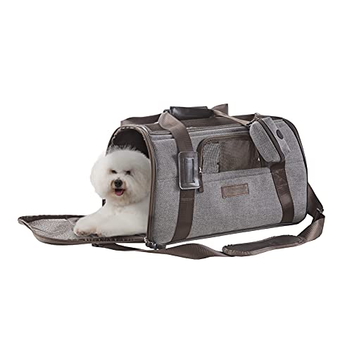 SCM Luchtvaartmaatschappij goedgekeurde zachte opvouwbare huisdierendrager, draagbare tas met de hand mee naar huis voor kleine honden, katten en puppy’s (multi-grijs, 44x25x28 cm)